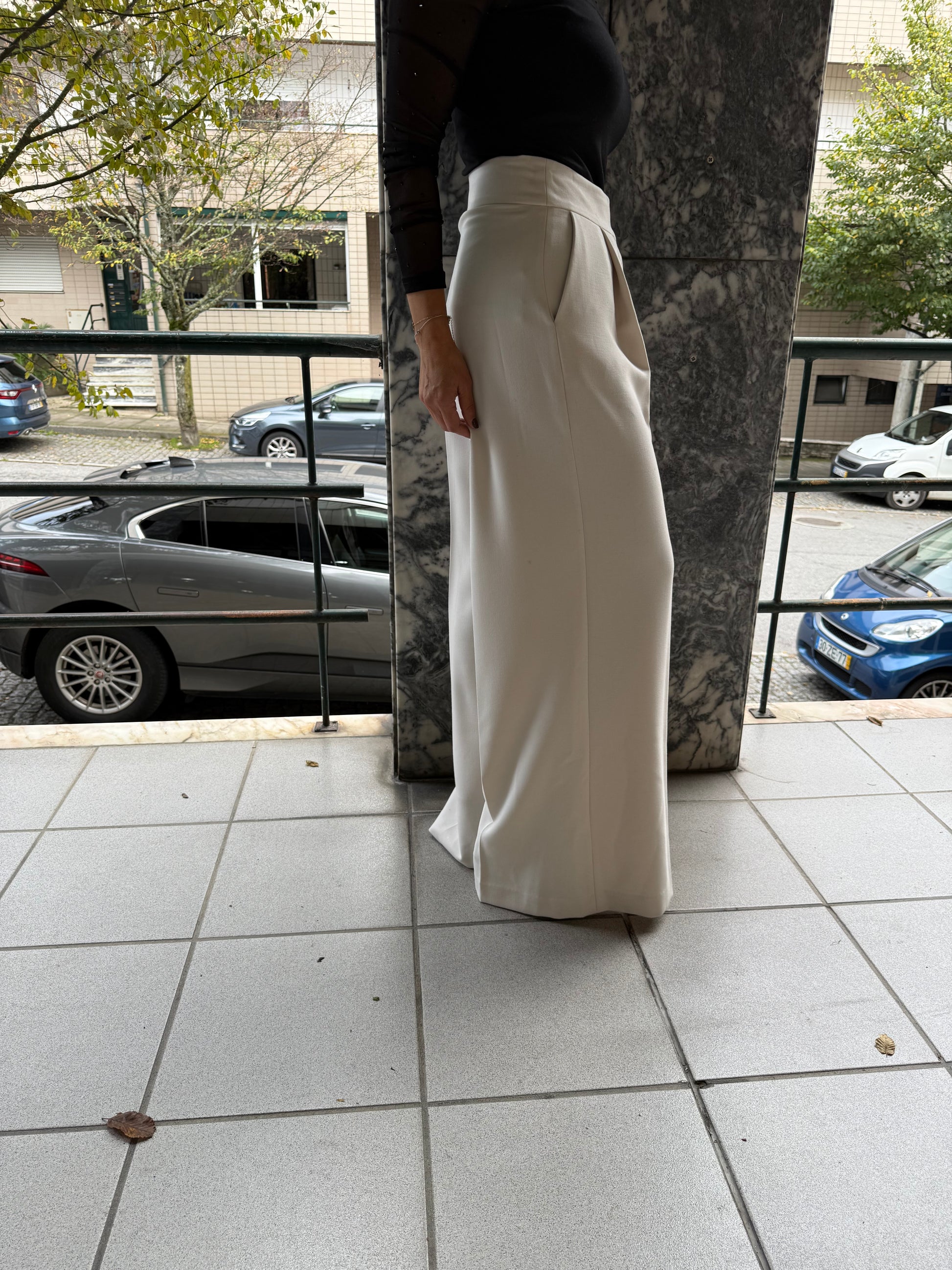 Calça larga com pregas a frente